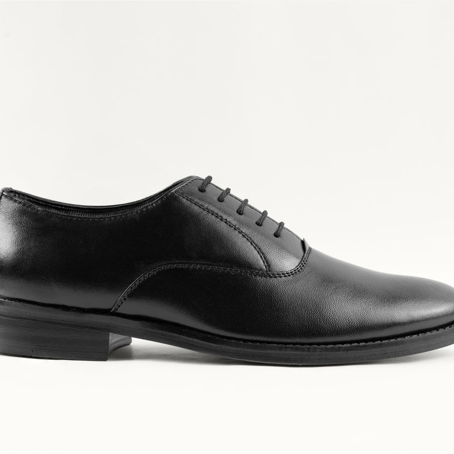 Highbury a classic black derby shoe features a sleek and timeless design, crafted from finest calf leather. It boasts an open-lacing system with five eyelets on each side, allowing for a secure and adjustable fit with a leather sole.