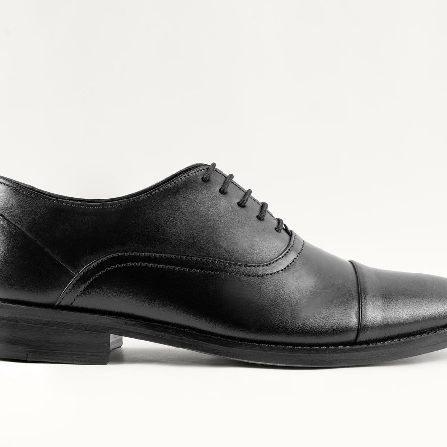 Radstock, one of our most popular straight toe cap oxfords, made from the finest black calf with single leather soles. From the Men's Main Collection. |