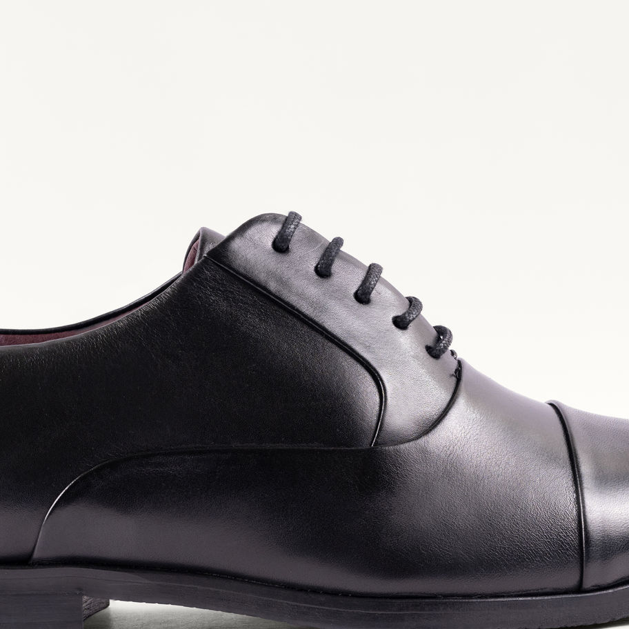 Seaton, a classic oxford toe shoe made with black calf leather and with a rubber sole.
