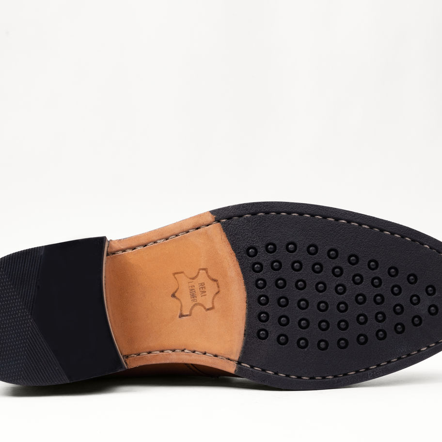 Tetbury, a plain fronted chukka boot made from the finest tan wax calf with a leather sole with half rubber soles.