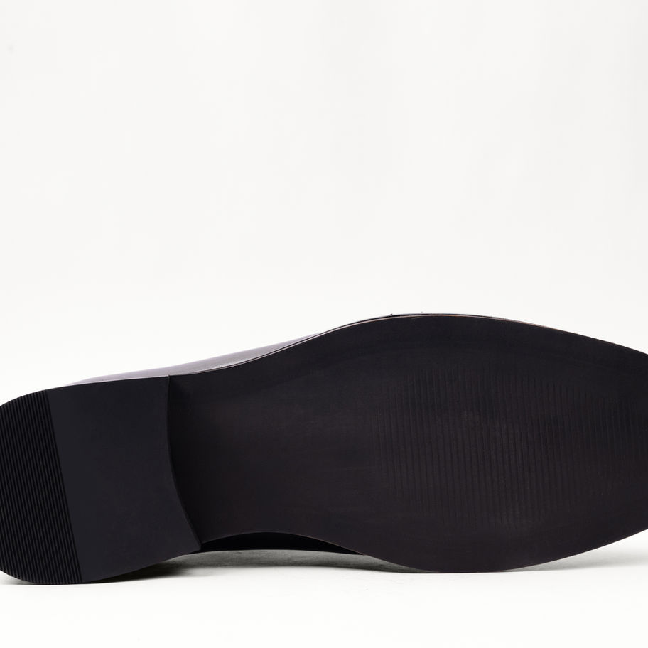 Albany, a semi-brogue oxford shoe with a straight toe cap and punching detail. Made from the finest black calf leather with rubber soles.